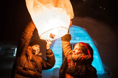 After dinner, there is time to chase the Northern lights or falling stars, enjoy the Arctic silence and sip on a drink in the Lounge. During New Year's Eve we provide all our guests with an environmentally friendly flying lantern that you can send off from the river's edge during the evening.
