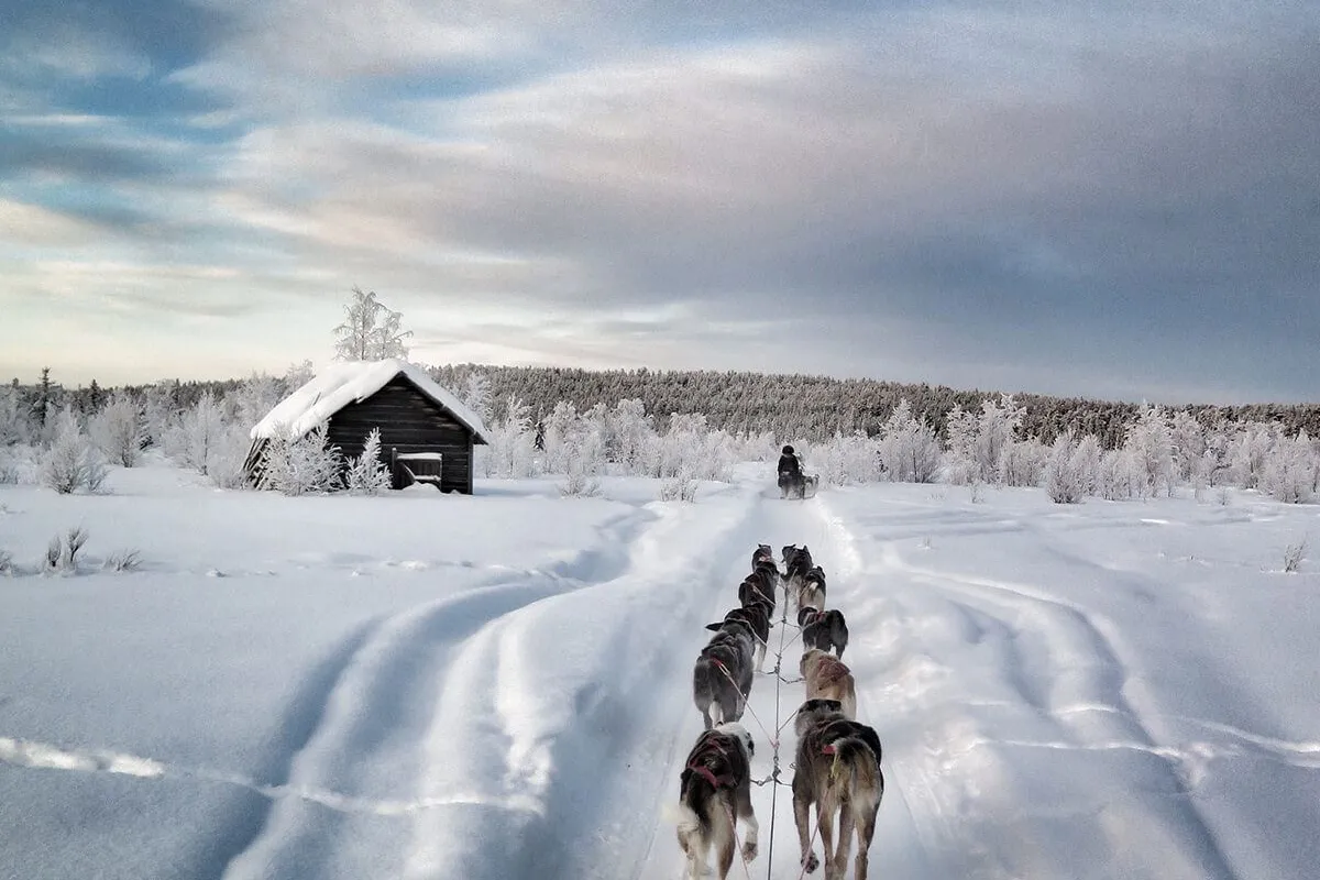 On this exciting tour you will travel as a passenger in the sled and enjoy an exhilarating dog sled ride in the beautiful boreal landscape that surrounds the Torne River.