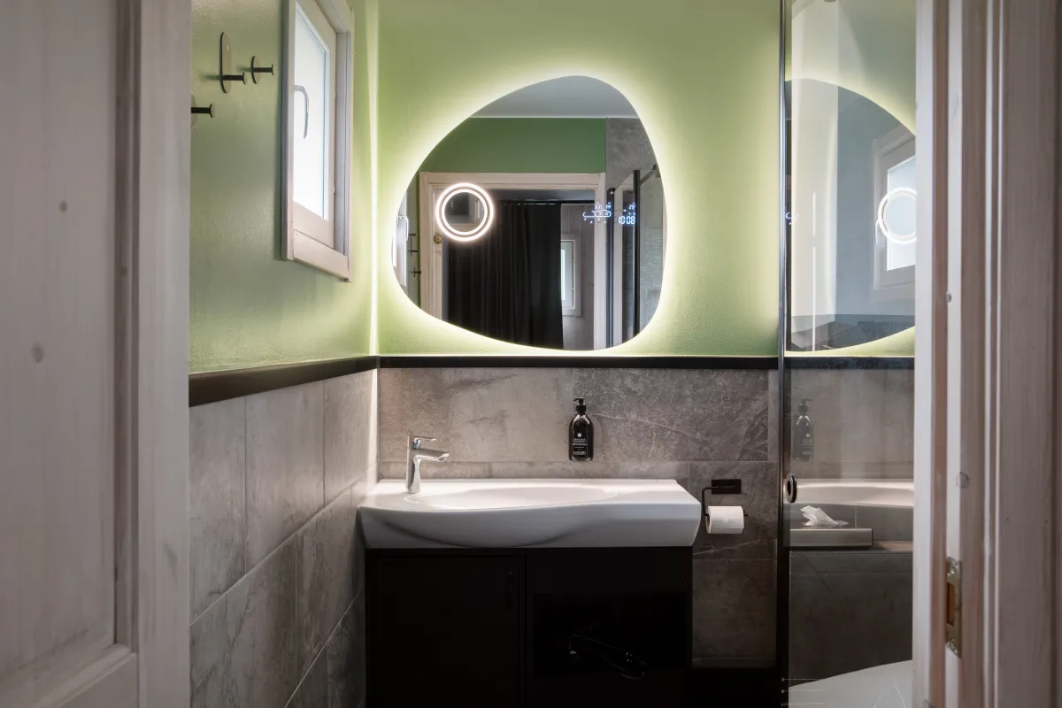 Våra arktiska stugor har två sovrum. I det större rummet sover du gott i en dubbelsäng från Carpe Diem, bäddad med mjuka täcken och kuddar. I det mindre rummet finns en bekväm enkelsäng och en extrasäng. Totalt rymmer vår Arktiska Stuga fyra gäster.