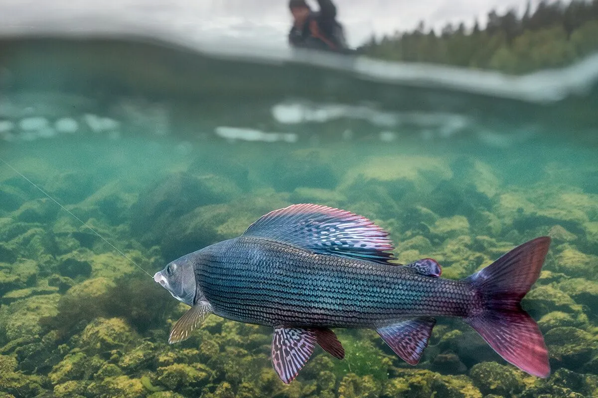 Fiskesträckan där vår camp ligger håller riktigt stor harr och mycket av dem. Medelvikten ligger på mellan 700-900 gram men det är inte ovanligt att harrar mellan 1,5–2 kg hugger!