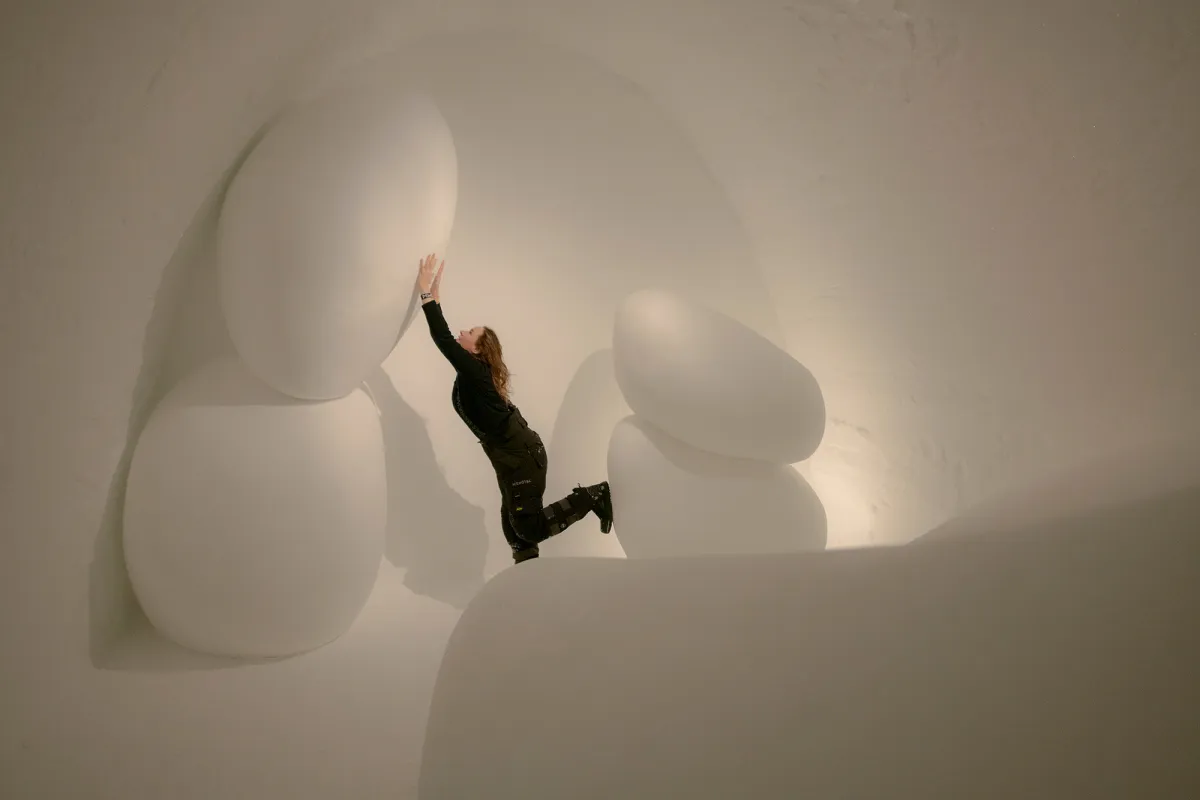 “Hideaway” är helt skapat av snö och is. Det är en naturlig, tyst och fridfull plats. En grotta, en fristad, en skyddad plats där du kan dra dig tillbaka.