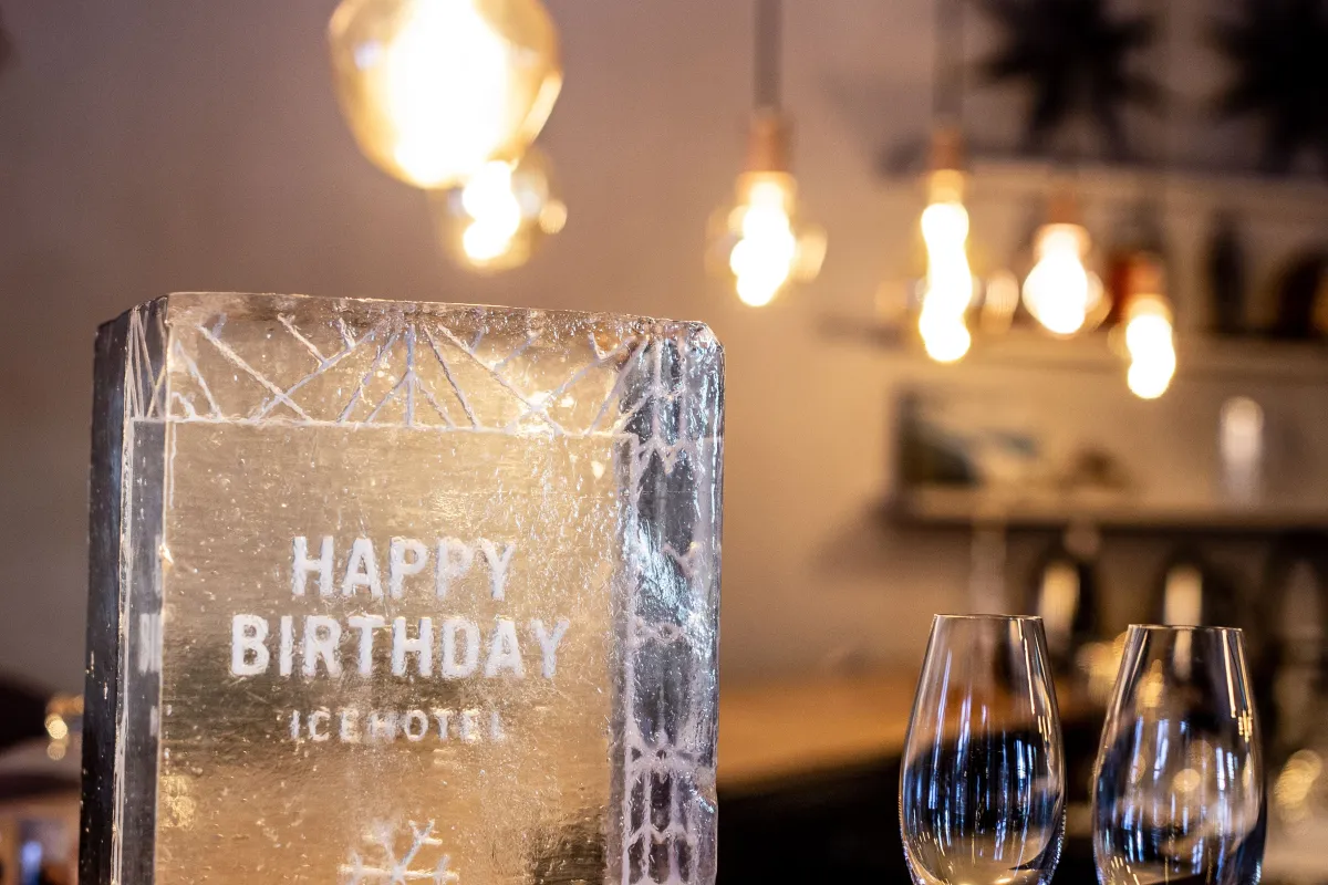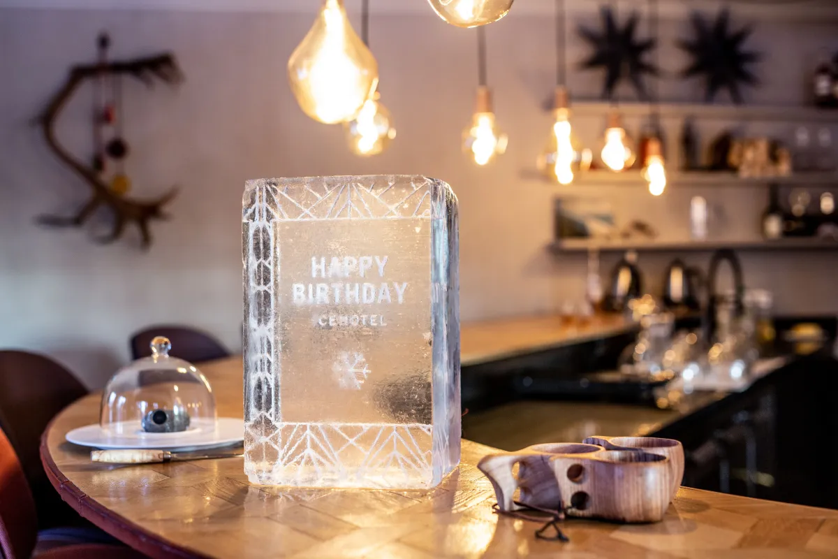 Ett isogram levererat till ett bokat middagsbord på Icehotel Restaurant