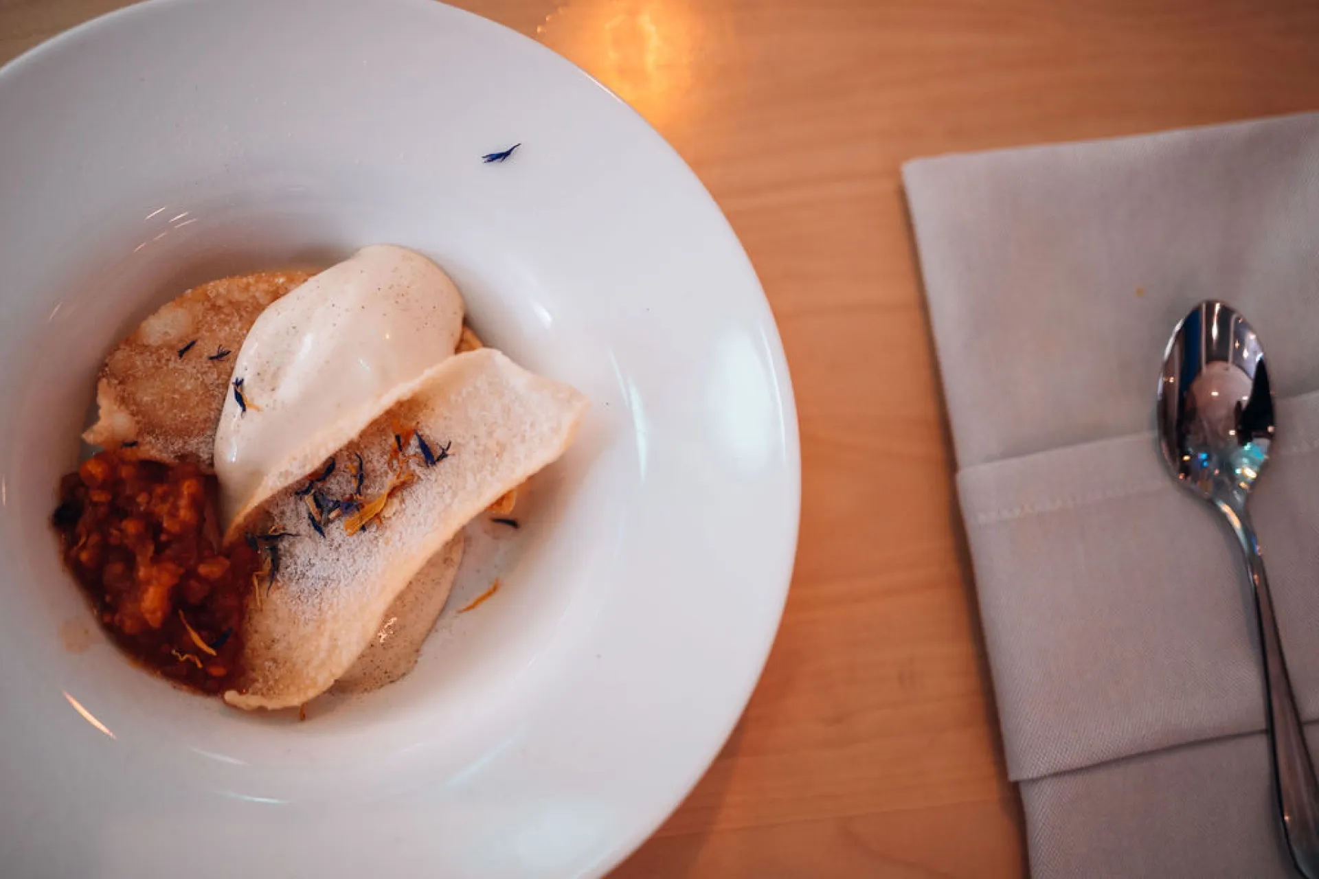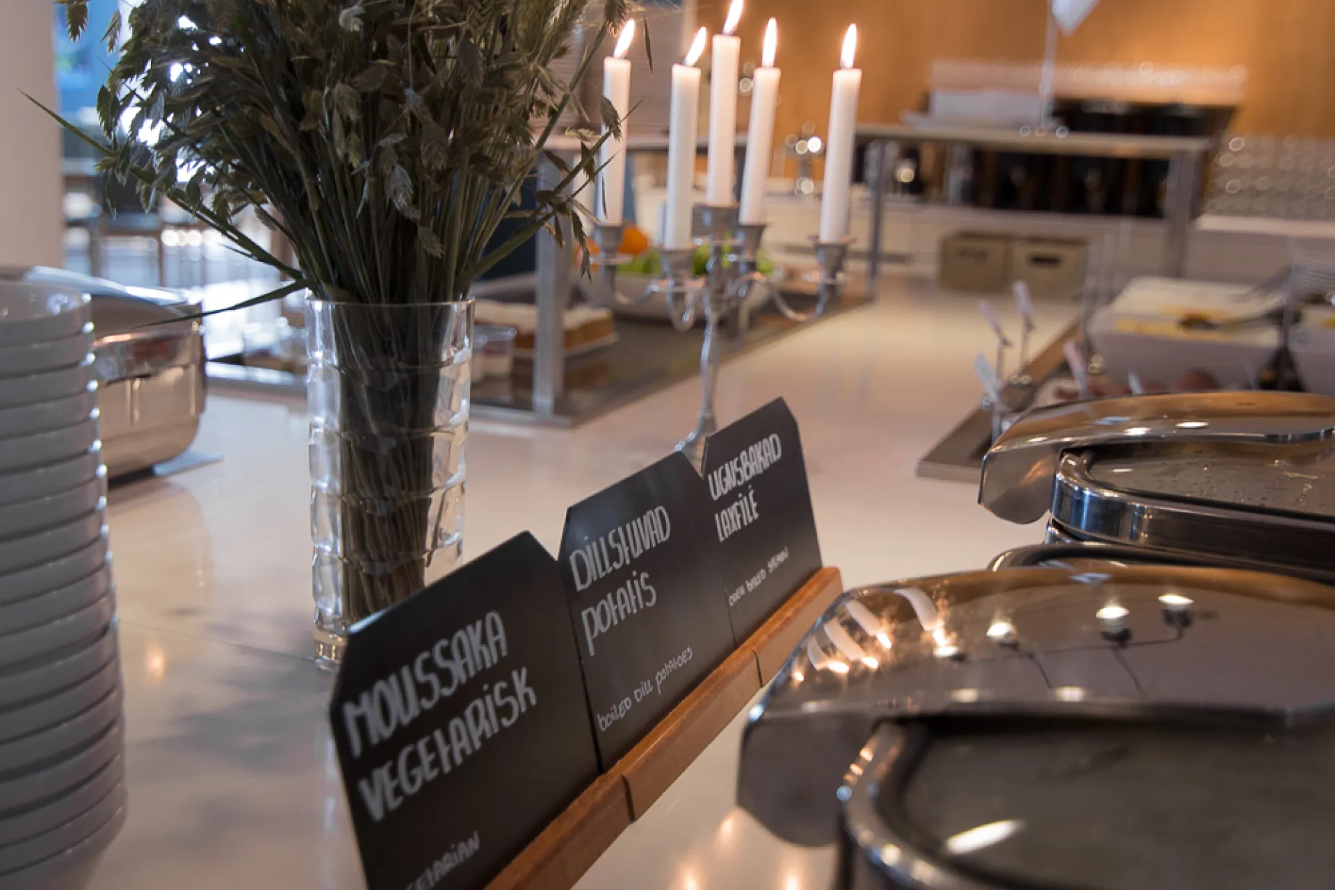 Efter en förmiddag ute i kylan är det skönt att ta av sig ytterkläderna och njuta av en lunch inne i varma ICEHOTEL Restaurant. Dagens lunch på ICEHOTEL serveras alltid med ett val av kött eller fisk samt ett vegetariskt alternav och dagens soppa. I lunchen ingår även salladsbuffé, efterrätt och kaffe/te.