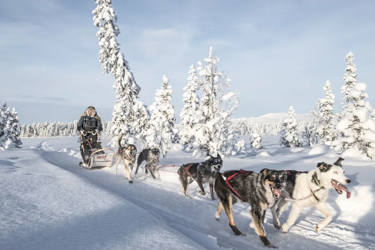 Kör din egen hundsläde och övernatta i en vildmarksstuga. Ett fantastiskt vinteräventyr med slädhundar, en trerätters middag, en värmande bastu och en natt i en av våra mysiga stugor i vildmarken!