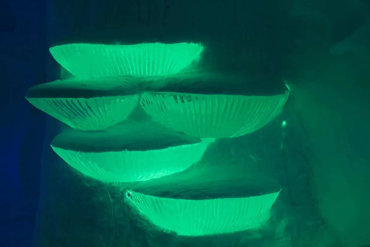 Guests of The Mushroom will be transported to a microscopic interpretation of the forest floorand invited to relax whitin the substrate of the woods amongst the leaves, mushrooms and creatures that inhabit this hidden world.