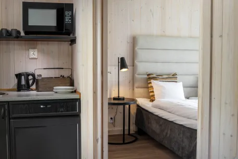 Our Arctic cabins offer restful sleep for up to three guests in luxurious and comfortable beds. They are decorated in traditional Scandinavian style – rustic and simple, just like life at the Arctic Circle.