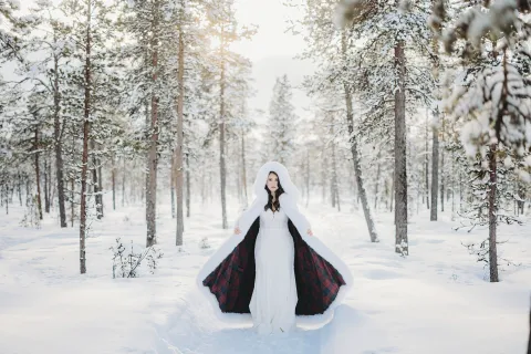 In winter, temperatures in Kiruna can drop to -30°C, so layers are a good idea and work well under both wedding dresses and suits. ICEHOTEL’s Arctic wedding package includes warm outerwear, which we recommend that guests wear during the ceremony.