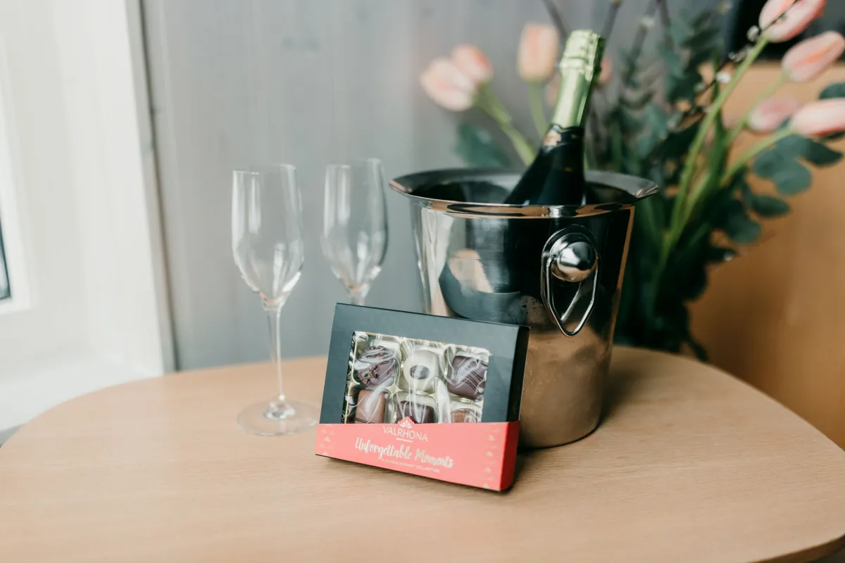 Surprise someone you love, or give yourself a treat by booking a welcome basket with sparkling wine and chocolate truffles.